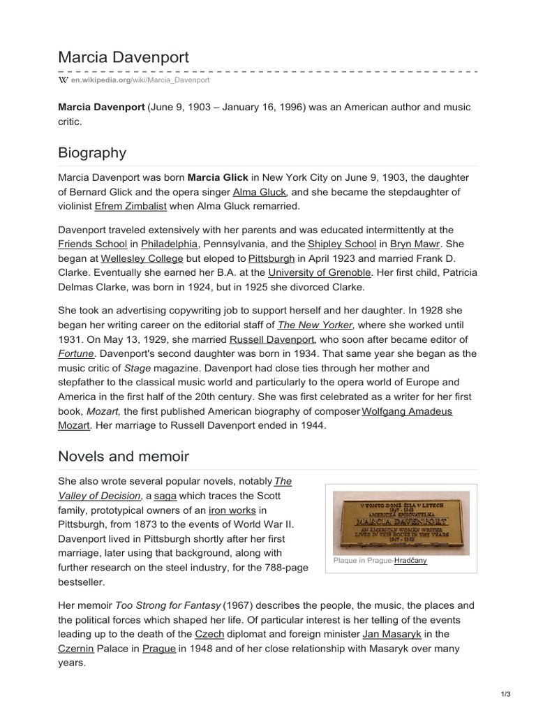 Born in new york city, marcia davenport was the daughter of the lyric soprano alma *gluck. There are no entries in marcia davenport forum. Marcia davenport is on facebook. See all books authored by marcia davenport, including the valley of decision, and garibaldi: